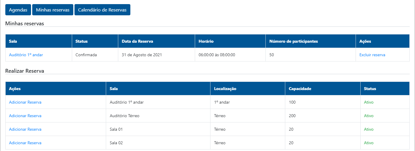 Crie agendas e adicione múltiplas salas de reunião para que seus colaboradores possam realizar reservas apenas acessando a intranet.